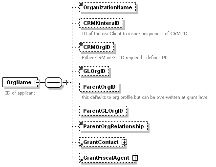 | children | OrganizationName CRMKinteraID CRMOrgID GLOrgID ParentOrgID ParentGLOrgID ParentOrgRelationship GrantContact GrantFiscalAgent | ||